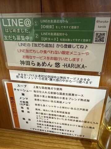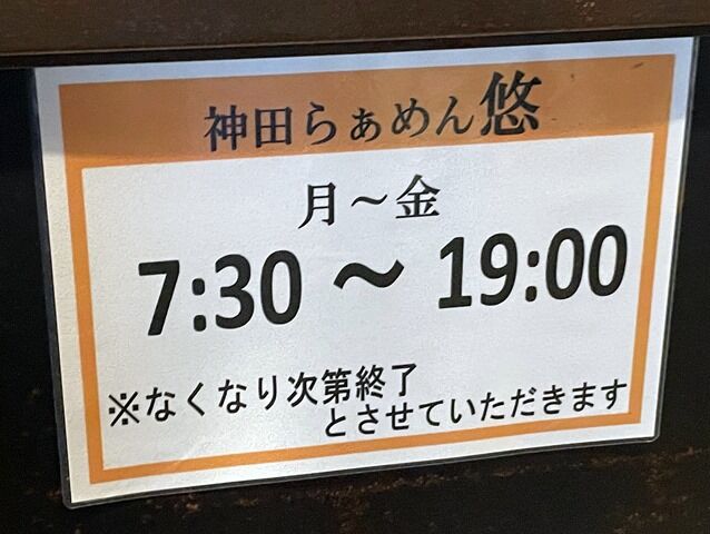 「神田らぁめん 悠」は2015年12月1日オーブン。店主さんは「ほりうち」出身って事で「満来」の系譜。2017年11月21日、姉妹店の「日本橋麺処 こはる」オーブン(後に閉店)。そして今回建物建て替えのため移転。