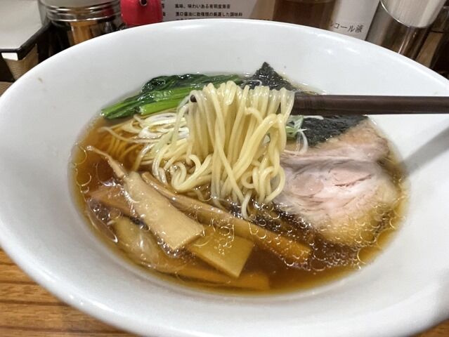 スープはさらさらの清湯醤油味。あっさりとした上品な鶏がらスープ。淡麗でシンプルで優しい味ながら、いつしか夢中にさせられる、ぐいぐいと牽引力のある、芳醇でまあるい豊潤な旨みがあります。系譜のイズムを感じさせる王道の味わいですごく美味しい!