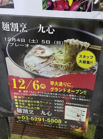 2021年12月28日、早稲田の新店「麺割烹 九心」へ。