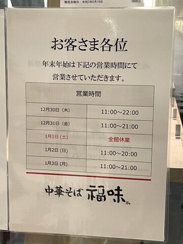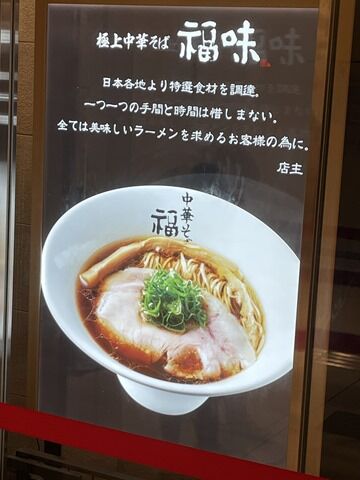 「中華そば 福味」は2019年3月5日「KITTE丸の内」の開業と同時に「ラーメン激戦区 東京・丸の内」の1店としてオープン。当初「松戸富田麺絆」、「福味」、「ど・みそ」、「阿吽」、「一幸舎」の5店でしたが「一幸舎」は閉店。跡地は改装中。他の4店は入れ替え無し。