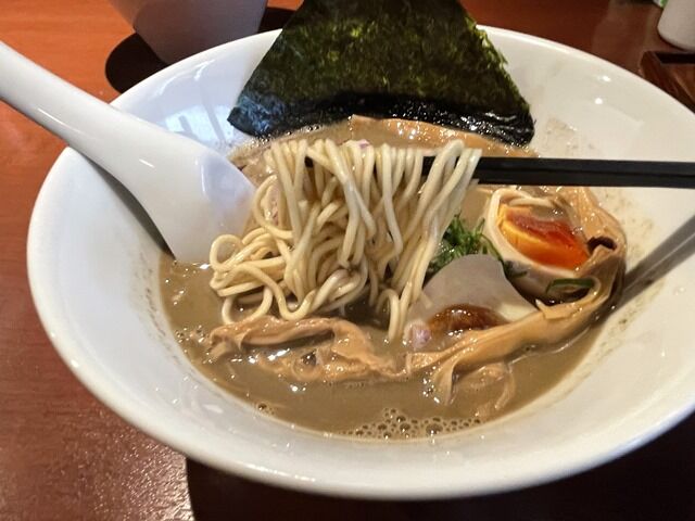 麺は「津軽煮干し中華蕎麦」よりも一回り太いタイプを使用。麺とスープの一体感も凄まじくいいです。