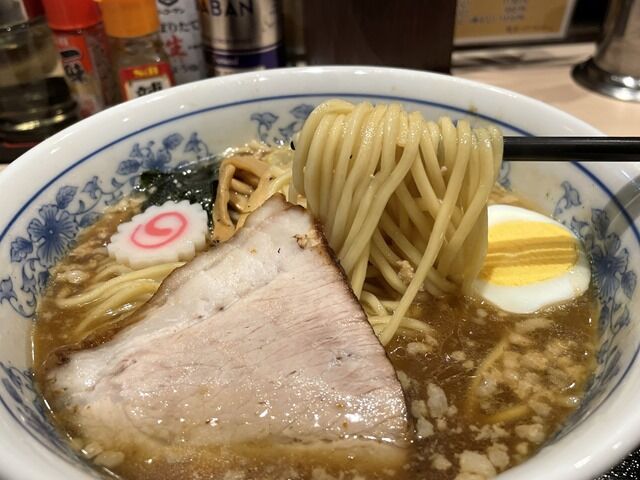 スープはさらりとした清湯醤油味。動物性の分厚いコクに多めの香味油。表層の油効果で終盤まで熱々をキープ。味は東池とはちょっと違いますが、個性が感じられてグッド。明年の系譜が感じられる懐かしくもあり、また今でもまったく色褪せない惹きと魅力のある味わいですごく美味しい!