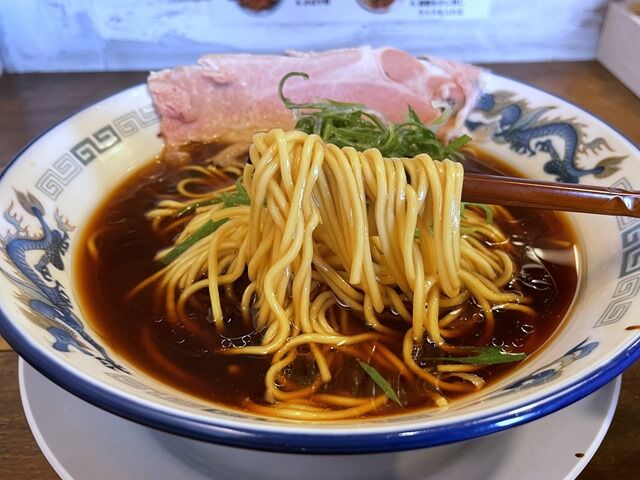 麺は村上朝日製麺所製のストレート中細タイプ。ザクザク食感で濃口スープとの一体感も良好。スルスルいけちゃいます。