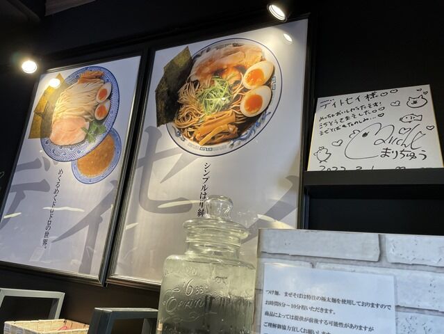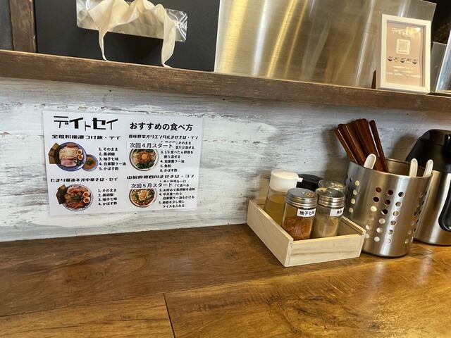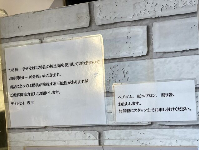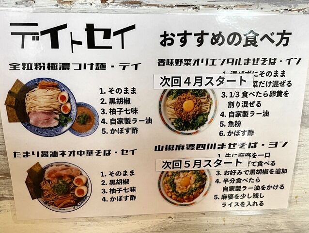屋号の「デイ」はどろどろつけ麺の「泥」、セイは正油の「正」。つけ麺(デイ)と中華そば(セイ)がオープニングの2枚看板。