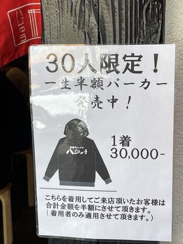 着用して来店すると一生半額となるスタッフパーカー(30着限定)3万円販売中。思わず値段を二度見(*_*)ってか、これ着て店に行くと100%スタッフに間違われそう^^;