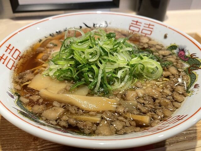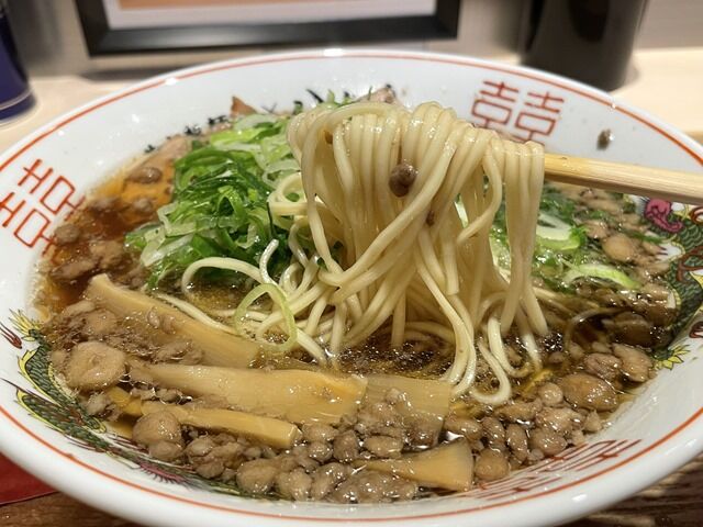 スープはさらさらの清湯醤油味。瀬戸内産のいりこと鶏がら、豚骨のスープ。オープン初日でいりこも動物性の出汁もやや大人しめかな。ただすっきりさっぱりあっさりしたスープに大粒の背脂ミンチがコクとパンチとインパクトを与えてとても美味しい!