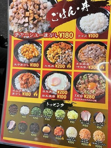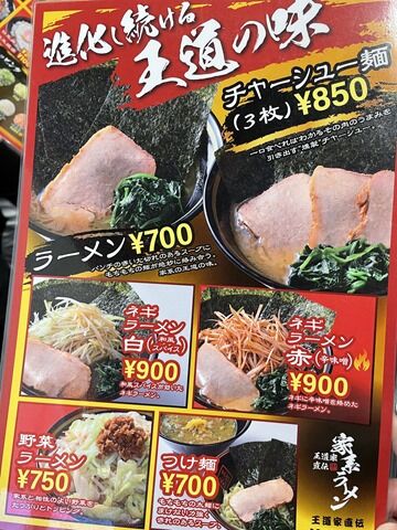 主なメニューはラーメン700円、チャーシュー麺850円、ネギラーメン白・赤900円、野菜ラーメン750円、つけ麺700円、他。