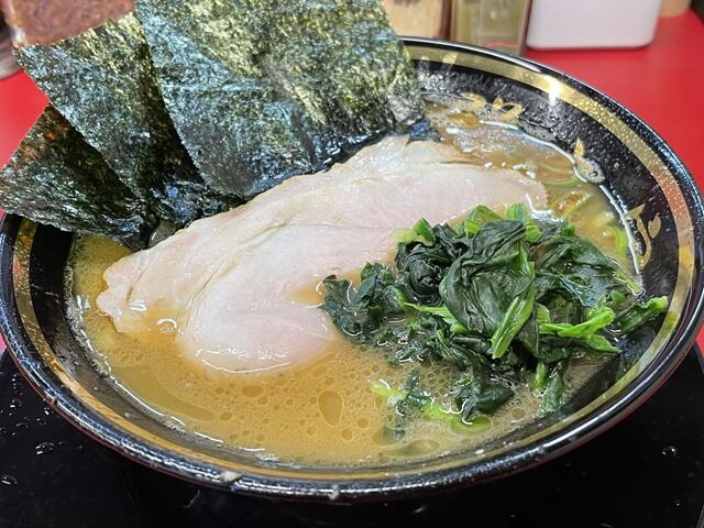具はチャーシュー、ほうれん草、海苔3枚。チャーシューはスモーキーで香ばしく噛みしめるとあジュワっと滲み出る逸品。