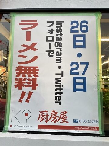 3月26日~27日の2日間ツイッター・インスタフォローでラーメン1杯無料。まる竹とセットでラーメン2杯無料w