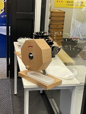 エントランスの風除室では清水社長プレゼンツのガラポン抽選実施。景品は王道家ゴールデン丼と殿丸家丼。