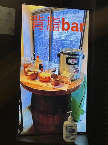 着席するとQRコードに関する説明と、あらかじめ背脂barから好みのアイテムをセルフで用意しておく様に言われます。
