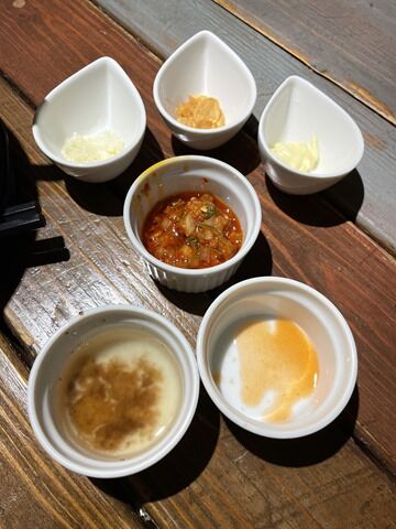 背脂barからチョイスしたアイテムは、背脂、タバスコ、食べるラー油、粉チーズ、フライドガーリック、マヨネーズ。洗い物増やしてすみませ(◞‸◟)