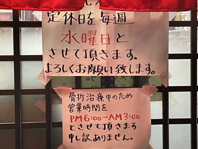 黒かどやさんのツイートによると、堀切菖蒲園タカノの深夜部門で18歳から40年努めた方が独立とのこと。当初2月11日建国記念日大安にオープン予定でしたが、店主さんがその11日早朝に貰い事故に遭遇し骨折入院、オープンが延期に。翌12日退院するも調理するには程遠い状態。そして今回無理を押して開店に漕ぎ着けた次第。