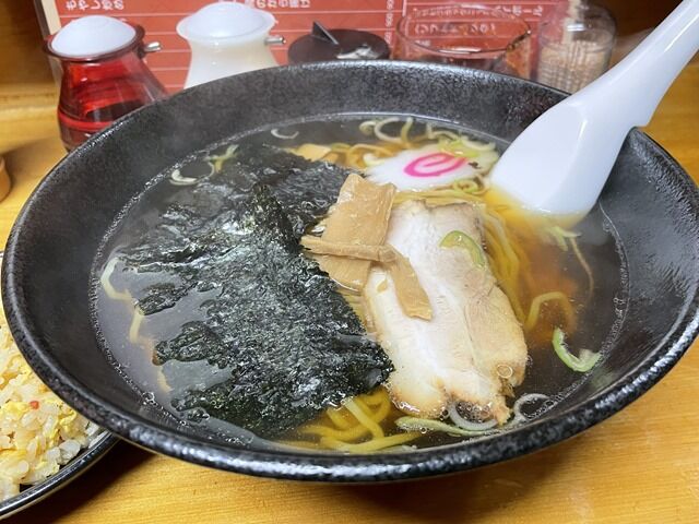 炒飯は店主さん、ラーメンは助手さんの息の合ったコンビネーションプレイでほぼ同時に着丼。