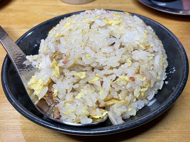 セットのチャーハン。ちなみにフルポーションの「チャーハン」単品は600円。具はチャーシュー片、玉子。ふんわりパラッと仕上げ。チャーハンだけいただくとやや薄味ですが、ラーメンと交互に食べるとその相性の良さと旨さに驚かされます。