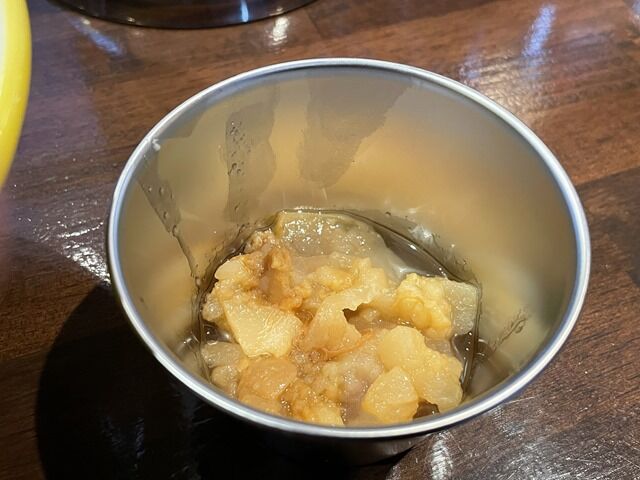 あぶらは別皿でお願いしましたが、たっぷりのデフォ分がトッピングされてきて、マシ分がステンレス製の容器で提供。ちょいアブラ摂取過多(^_^;)