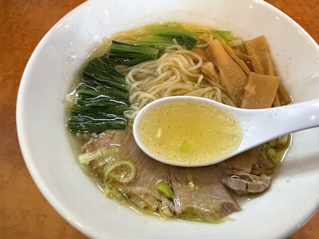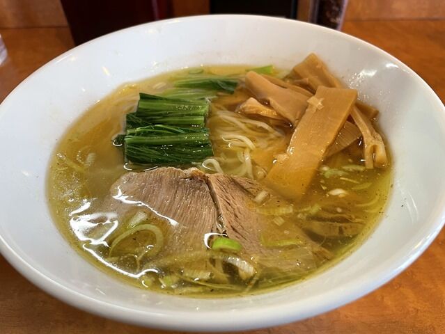 スープはさらさらの無化調清湯塩味。鶏ベースでほんのり魚介。あっさりとして柔らかくしとやかで優しい味わい。端麗でさっぱりとしつつも不足感はなくうま味がしみじみと広がります。店主さんの人がらがにじみ出たようなほのぼのとした味ですごく美味しい!