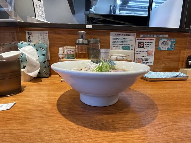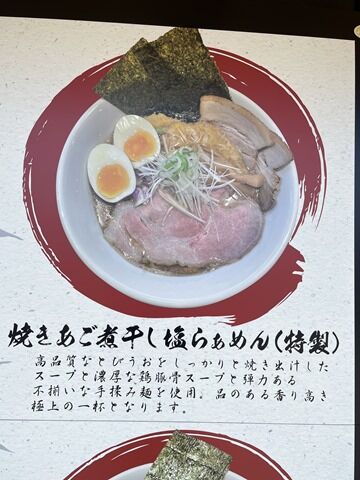 そして待つことしばし、「焼あご煮干し塩らぁめん」完成で~す♪