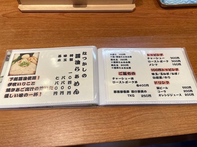 入店するとまず券売機で食券購入です。主なメニューは、焼あご煮干し塩らぁめん790円、(数量限定)焼あご煮干し濃厚らぁめん860円、(数量限定)和え玉200円、なつかしの醤油らぁめん780円、ローストポーク丼400円、他。