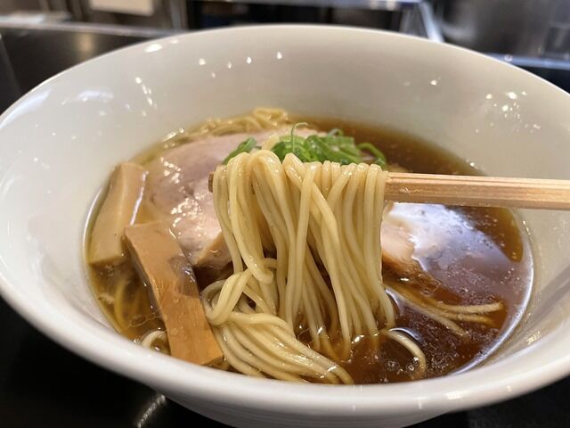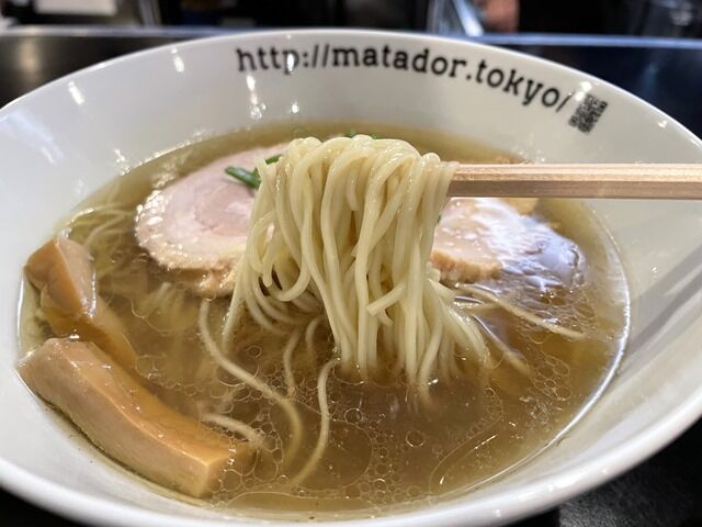 スープはさらさらの清湯醤油味。豚x鶏x魚介のハイブリットスープ。特に珍しい食材としては、さわら、鮭節厚削り等を使用。牛脂もほんの少量使用しているとのこと。豚出汁が強めでマタドールらしい油を巧みに使った淡麗ながらうま味がビビットに来る味わい。水鶏的な醤油が立ってキレッキレとは異なる、意識高い感覚とも違う、最新技術でラーメンらしさを研ぎ澄ましたような、一口目からうま味がほとばしって誰もが好きになる、そんな味わいですごく美味しい!