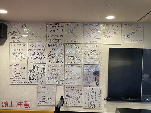 「牛骨らぁ麺マタドール」について。岩立店主は柳麺 ちゃぶ屋、麺香房 天照、しおの風等で修行。大宮そごうの集合施設「ラー戦場」の第一回ラーメン職人オーディションにて優勝。2003年12月「ラー戦場」に「牛骨らぁ麺マタドール」オープン(閉店)。