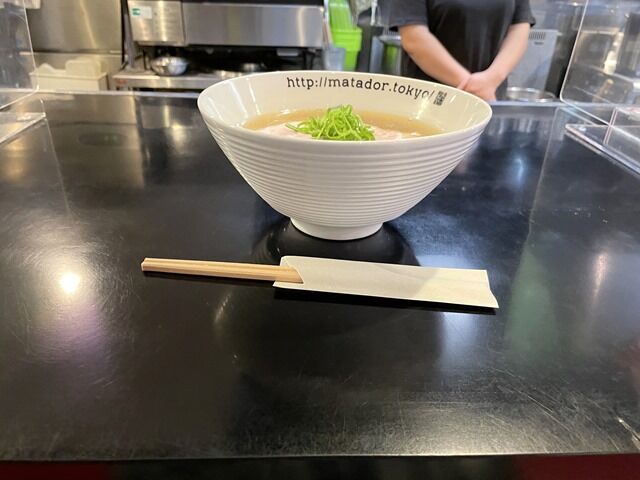 マタドールURL入り、角度急めのボウル状の器で着丼。