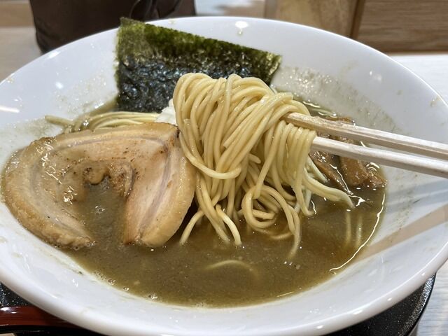 麺はストレート中細タイプ。目の覚めるようなパッツンパッツンの低加水ザクザク食感。硬質な食感と歯ごたえが濃厚なのにキレのあるスープと抜群の好相性。
