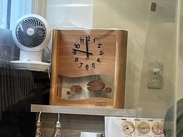 店内は厨房前に真っ直ぐなカウンター4席、3人卓x3、4人卓x1。カウンターと各テーブル共に隣席との間にアクリル板の仕切り設置、消毒液は入口入って横に設置。