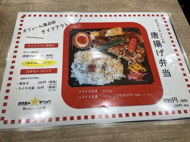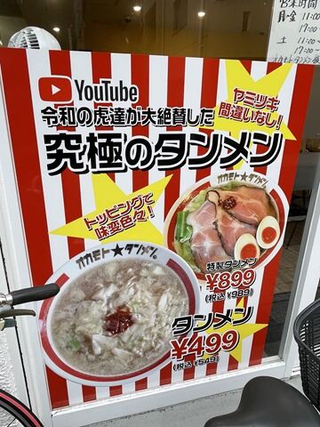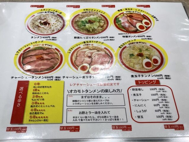 2022年6月13日オープン。滋賀県発「オカモトタンメン」のフランチャイズ2号店。ラー博「井出商店」の後こちらへ。「オカモトタンメン」は2019年6月10日、滋賀県彦根市にオープン。運営は、「マネーの虎」を模した令和YouTube版「令和の虎」でALLを勝ち取った店主岡本太氏率いる㈱ジョニー。系列店は、バリバリジョニー、麺屋ジョニー、大衆酒場赤鬼等。2021年8月30日「オカモトタンメン 愛知川店」オープン。2022年4月20日FC1号店「御経塚店」オープン。2022年7月25日FC3号店北本店オープン予定。