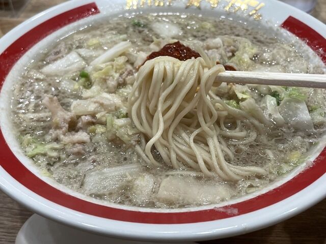 スープはさらりとした透明な塩味。さっぱりあっさりクリアーな動物性のスープにニンニクをバッチリ効かせて背脂でコクをズシリとブーストアップ。構成的にオカモトタンメン=滋賀タンメン≒岐阜タンメンかと。あっさりスープにニンニク・背脂・辛味と食べやすく細かくカットした具材のコーディネートで、惹きの強いハマる系のやみつき度の高い味わいに。3辛は程よい辛さで、辛党は物足りないかもですが食べやすいレベル。ビジュアルはシンプルですが、味は間違いないパワーエナジーインパクトパンチ系ですごく美味しい!