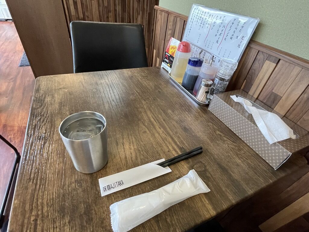 12:30頃到着で先客家族連れ1組4名、後客なし。スタッフは調理の店主さんと接客の女性の2名体制。