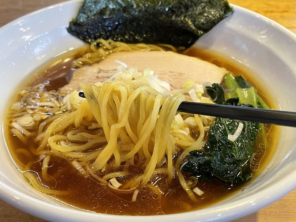 スープはさらさらの清湯醤油味。鶏魚介でしょうか。魚介が尻上がりに前面に出てくる感じ。あっさりすっきりさっぱりとちょっと懐かしいネオクラシカルな味わい。醤油味ですがタレに頼らず出汁の旨味でグイグイ引っ張る感覚。シンプルながら奥深い一品でとても美味しい!
