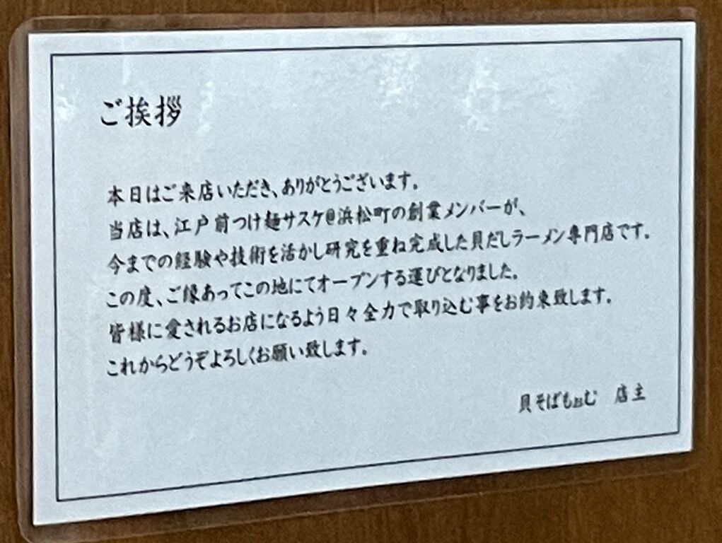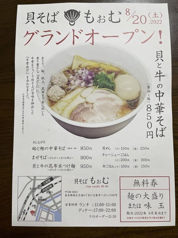 2022年8月22日、田町の新店「貝そば もぉむ」へ。