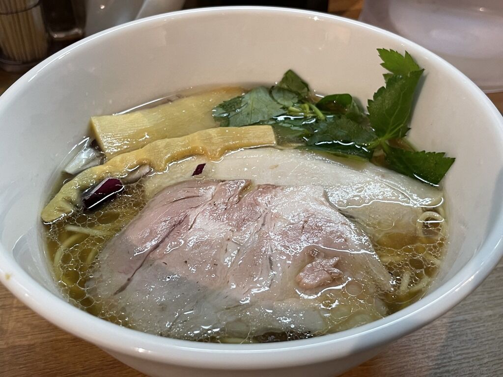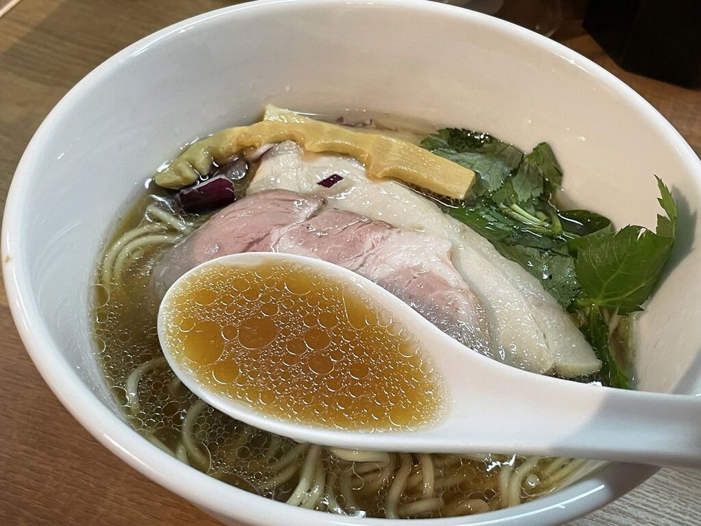 スープはさらさらの清湯醤油味。牛出汁は正直感じられませんが、貝の風味と味はバッチリ。貝の旨みほと走る分かりやすい貝スープでとても美味しい!