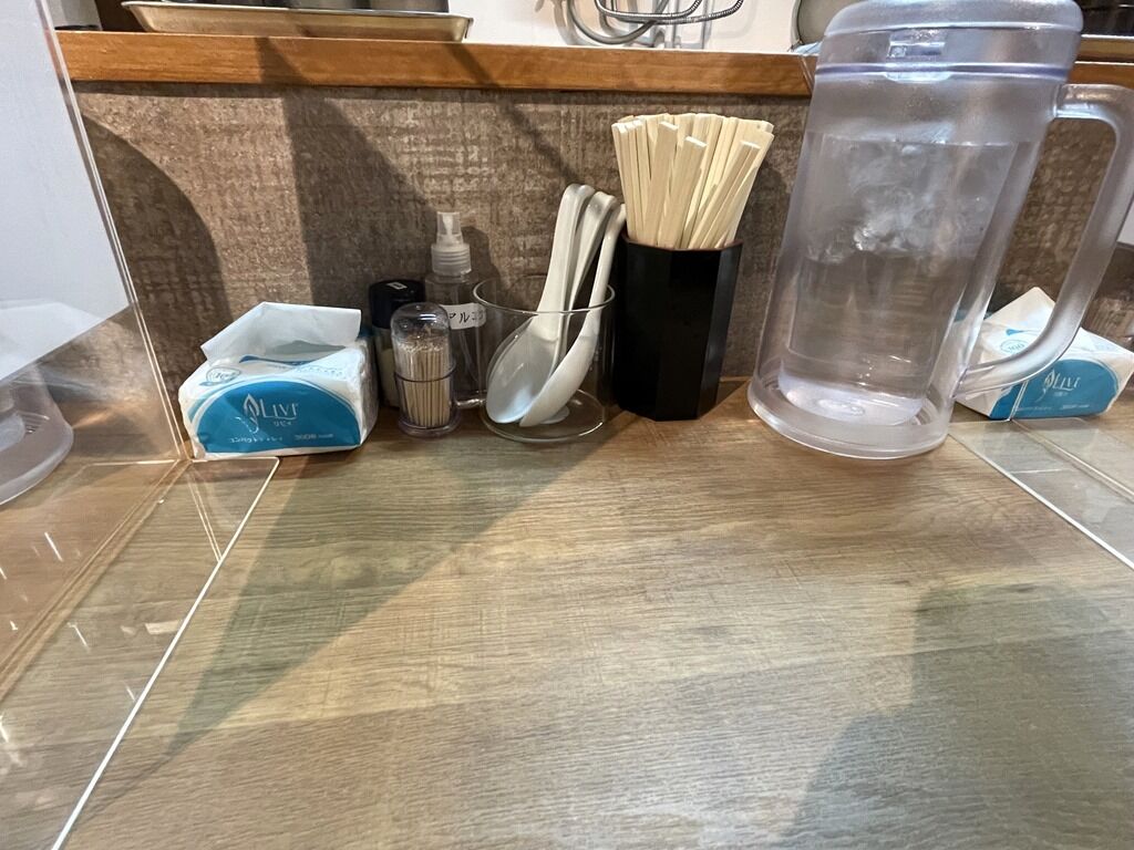 BGMはポップス。箸は割り箸。卓上調味料は胡椒。