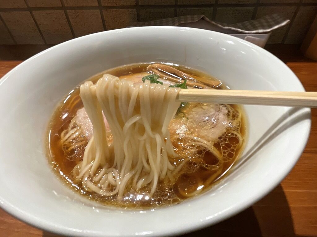 スープはさらさらの無化調清湯醤油味。鶏メインでうま味がグイグイ押し寄せる圧倒的でリッチな出汁感。飯田商店かRamen FeeLか、はたまたトイ・ボックスを彷彿させるようなキレッキレで芳醇でシャープな味わい。驚きのスーパーハイレベル、ハイパークオリティな完成度ですごく美味しい!