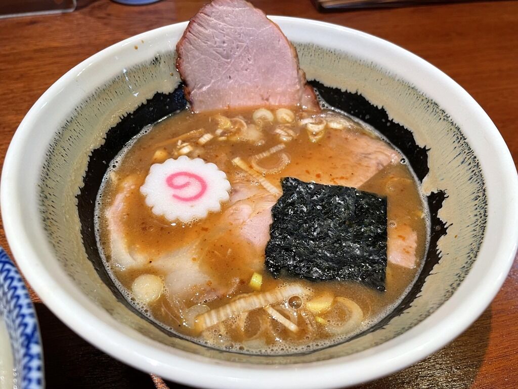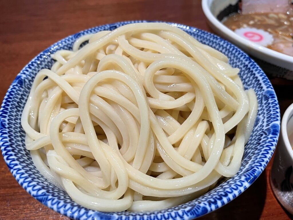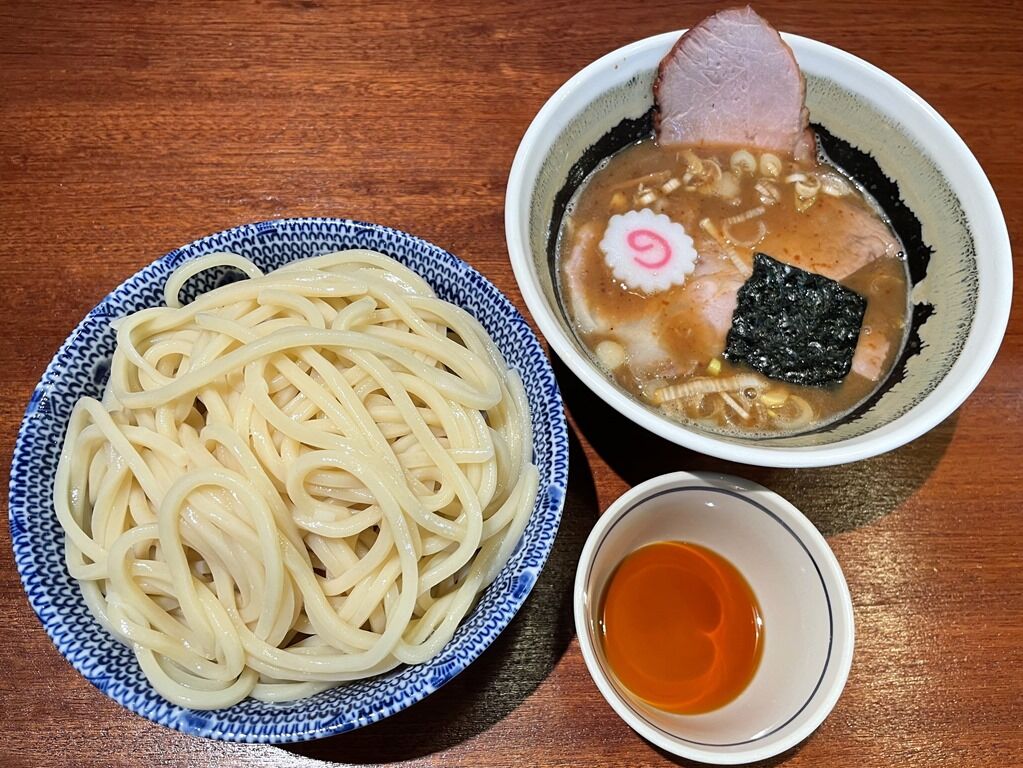 つけ汁はとろっと濃厚な豚骨魚介醤油味。鶏豚煮干野菜を2日間炊いたこくまろつけ汁。のど越し抜群の麺とのタッグは最強最幸の旨さ。麺はもちろんチャーシューの旨さも尋常なレベルではなく、確かに平日の昼から長時間列んでも食べたいレベル。感動を惹起されて口福に浸れる一盃ですごく美味しい!