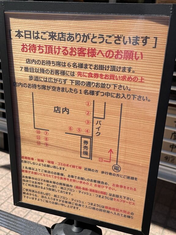 後客いっぱいあっという間に客席・中待ち席共に満席、外待ち発生。写真は撮れませんでしたが、壁面には「番町製麺」のTシャツがディスプレイ。