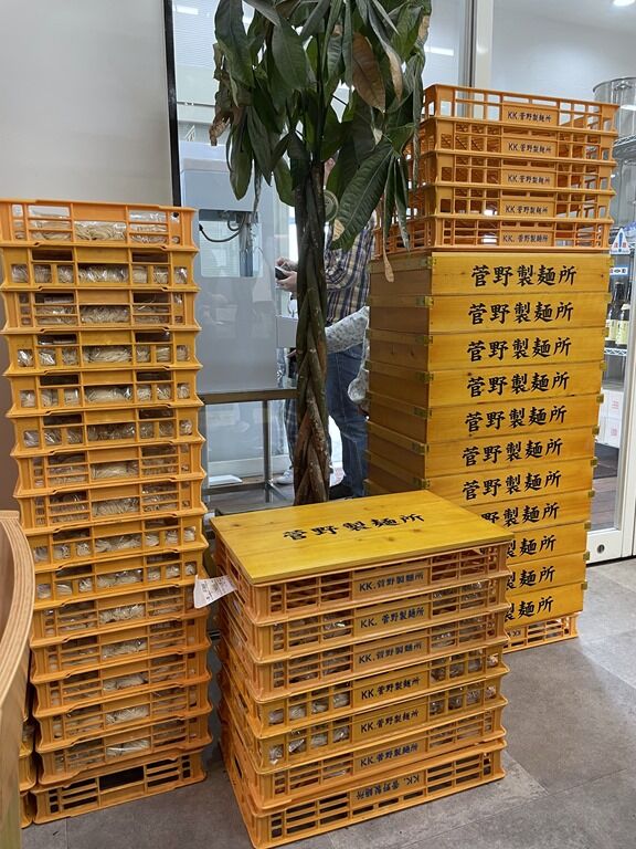 20分前到着でシャッター待ちの先客4に接続。店頭待ち用ベンチは4人掛けで、立ち待ちの先頭に。