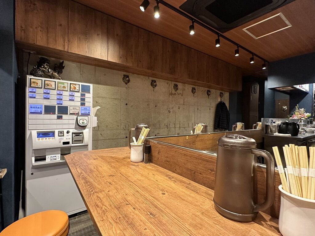 店内は厨房を囲むL字型カウンター9席(6・3)。パーティションは無し。消毒液は券売機横に配置。19:00頃到着で先客2後客1。スタッフは厨房に店主さん、ワンオペ体制。ものすごく腰が低く親切丁寧な神接客。