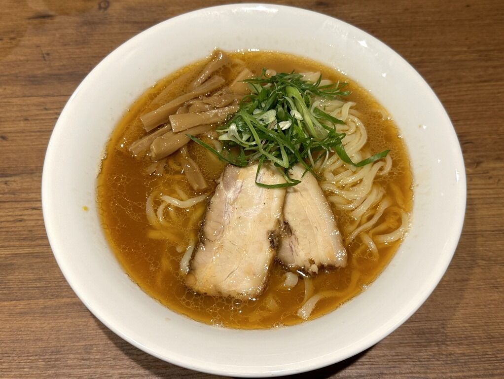 具はチャーシュー2枚、メンマ8本ほど、きざみ青ねぎ。
