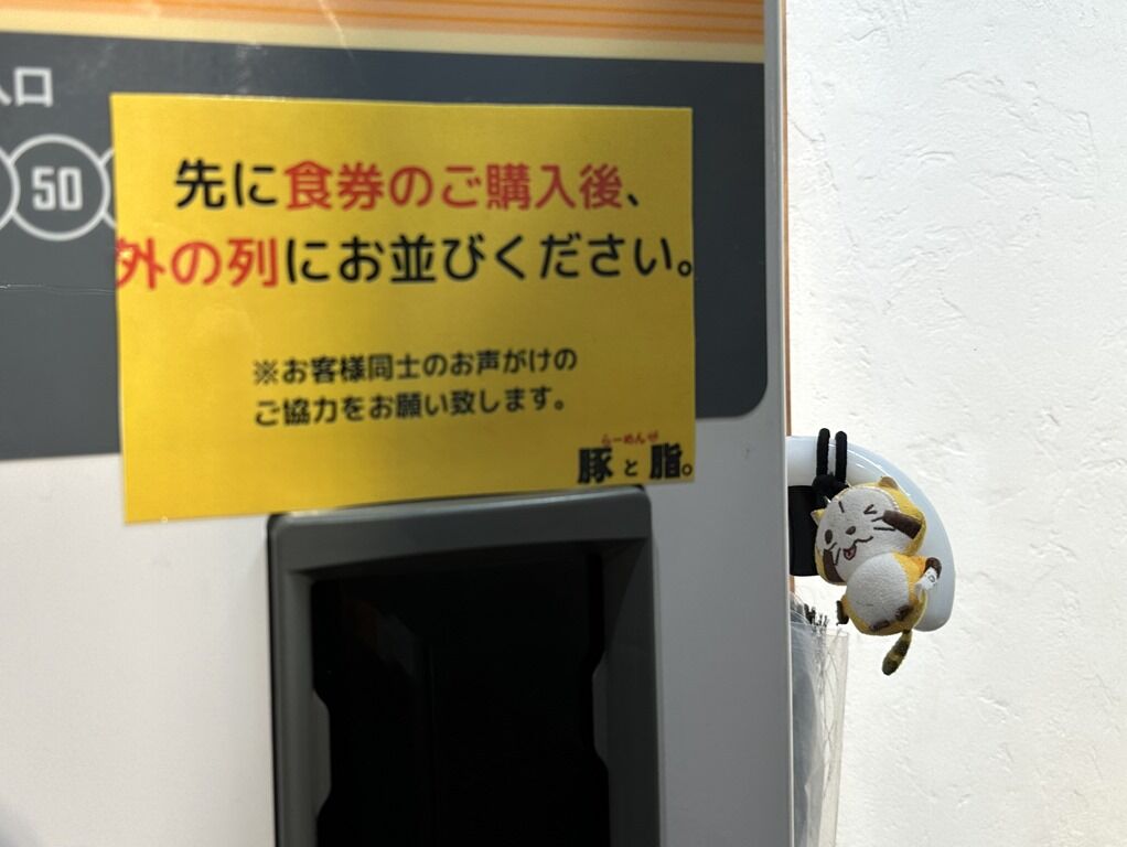 20:10頃到着で店内満席外待ち8。先に食券を買ってから列ぶルールでいったん店内へ。