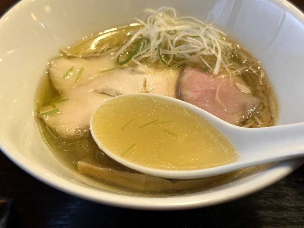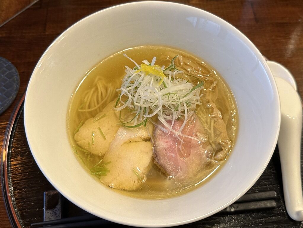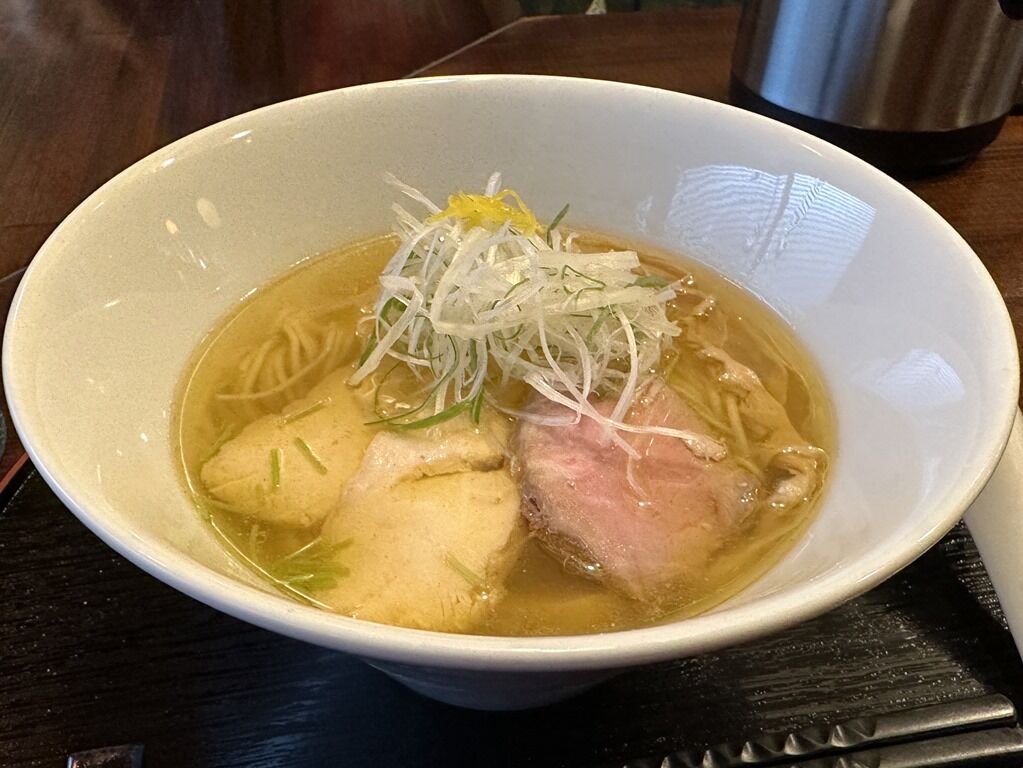 澄んだ琥珀色の「黄金湯」と呼ばれるスープは、さらさらの清湯醤油味。節出汁としじみの貝出汁に、タレは白醤油ベース。鶏油は親鳥と若鳥のブレンド。鴨to葱・楽観で会得した技術を統合してさらに昇華させたかの様な、淡麗ながら深いコクと溢れんばかりの豊潤で豊饒な味わい。隠れ家的過ぎる店舗ですが、早晩行列店になりそうなハイパークオリティですごく美味しい!