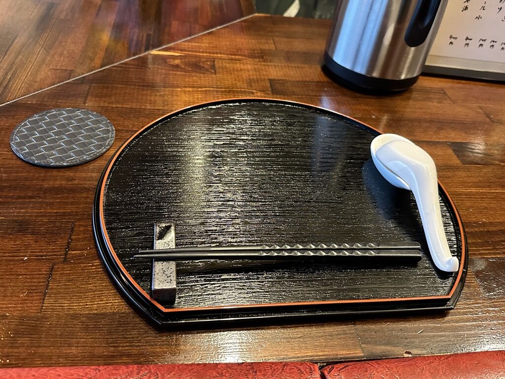 BGMはポップス。箸は洗い箸で資源環境に配慮。卓上調味料は無し。