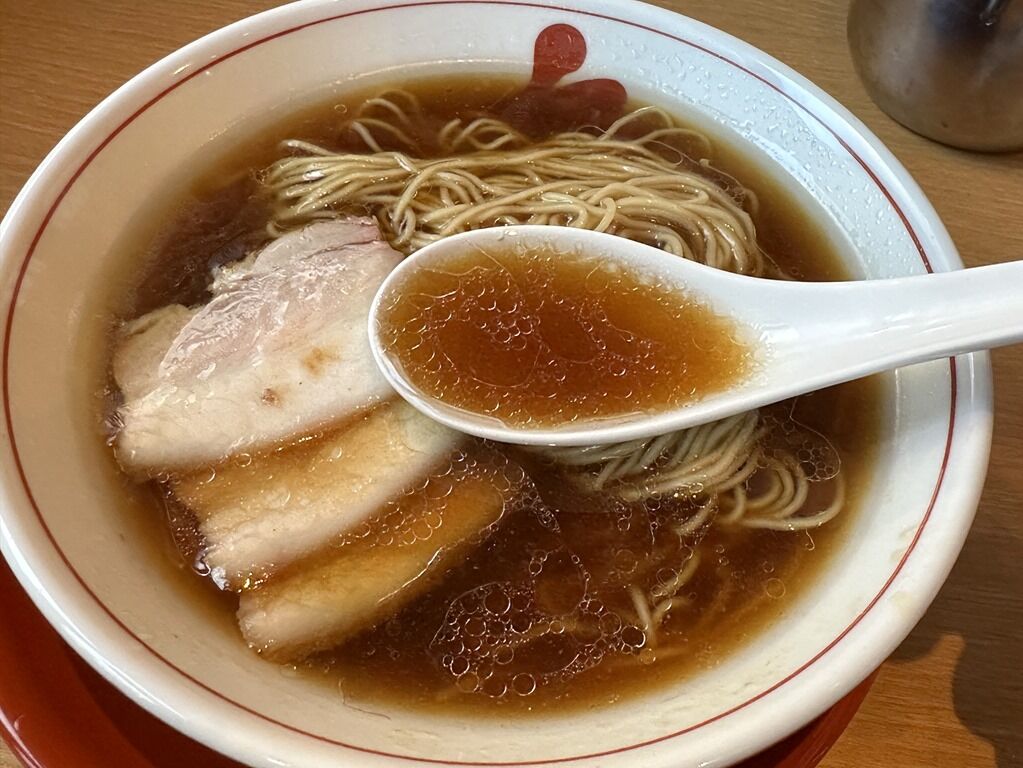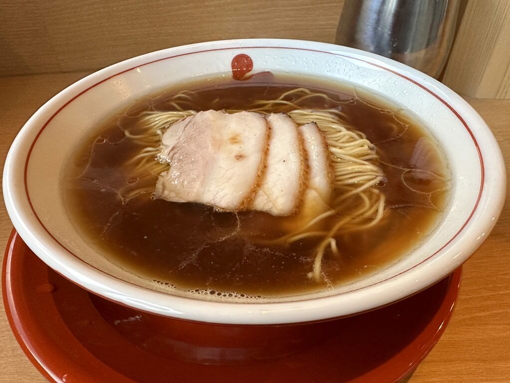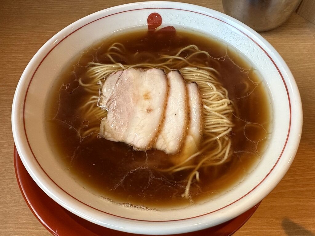 スープはさらさらの清湯醤油味。熱々での提供。鶏ベースらしいあっさりスープに驚くほどたっぷりの鶏油。スープのボディがしっかり、タレ濃い目、鶏油多めで、淡麗ながら惹きの強い後引く癖になるうま味たっぷりな味わい。チャーシューも大きめなのが3枚で、他の具を排したとはいえ、この組み立てで680円は素晴らしい。鶏油の旨みが沁みてレンゲが止まらない旨さがあってとても美味しい!
