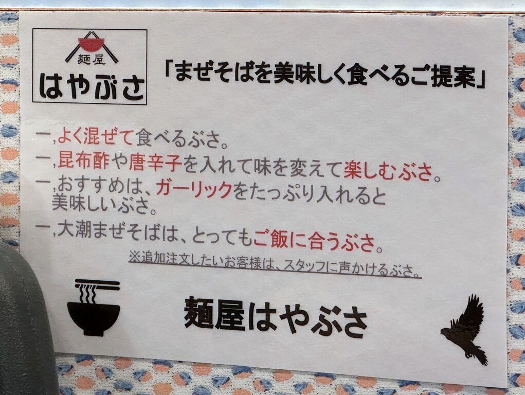 名古屋を中心に直営5店舗(他に暖簾分け店数店舗)を展開する「麺屋はやぶさ」(㈱サンクワン)の東京初進出店。