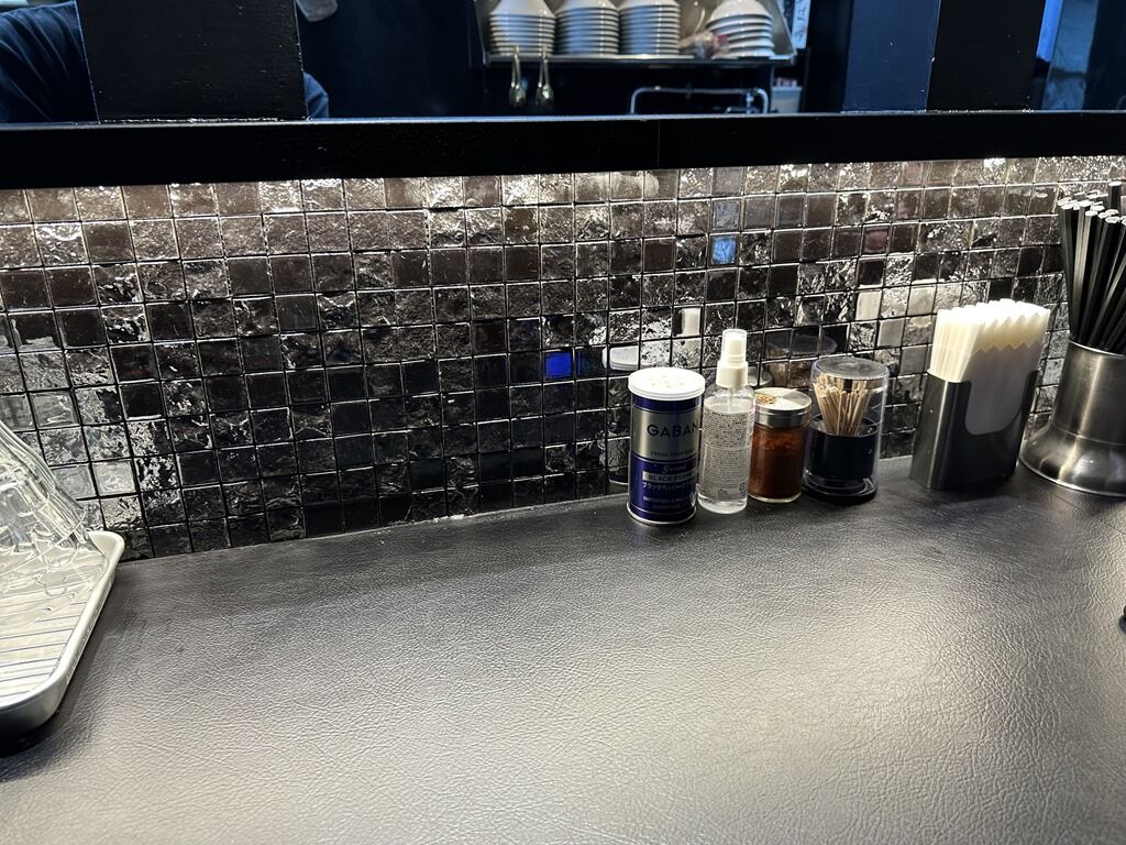 BGMはDrag on ashではなくSUPER BEAVER縛り、ハイライトとか、閃光とか。箸は洗い箸で資源環境に配慮。卓上調味料はGABANブラックペッパー、一味唐辛子。