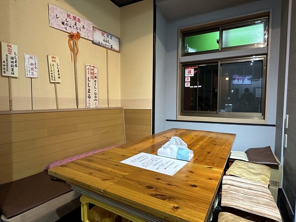 店内は厨房前にカウンター3席、4人卓x1、2人卓x1、6人卓x1。19:00頃到着で先客1、後客無し。スタッフは厨房に店主さんワンオペ体制。