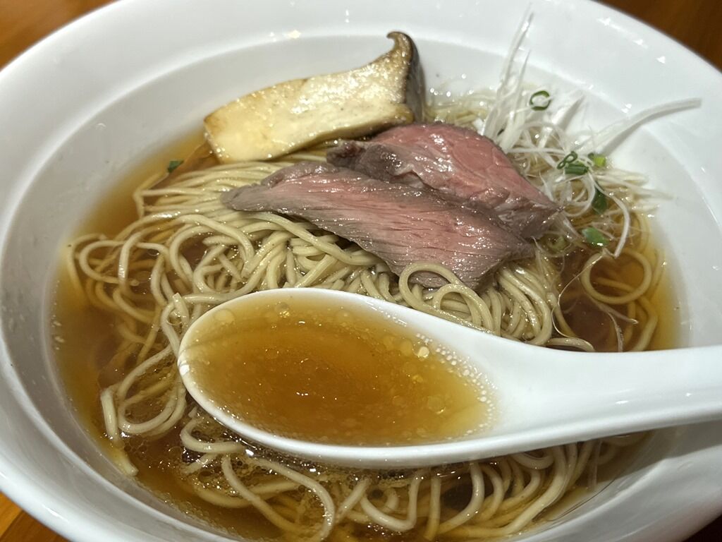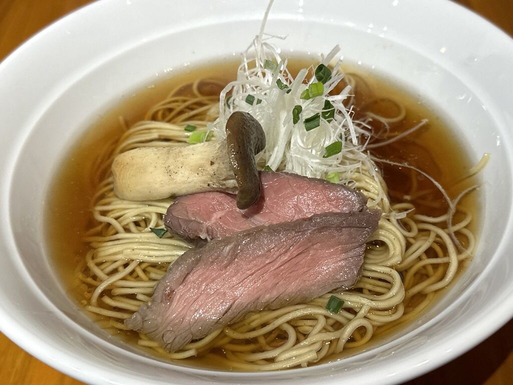 スープはさらさらの清湯醤油味。ちょっと甘めで牛出汁くっきり。分かりやすい牛スープですが、牛脂のべたつきや独特な癖がないのがいいですね。間借りの狭小キッチンでこれほどの一杯に仕上げるとはただ者ではない予感。牛を堪能できる一杯でとても美味しい!