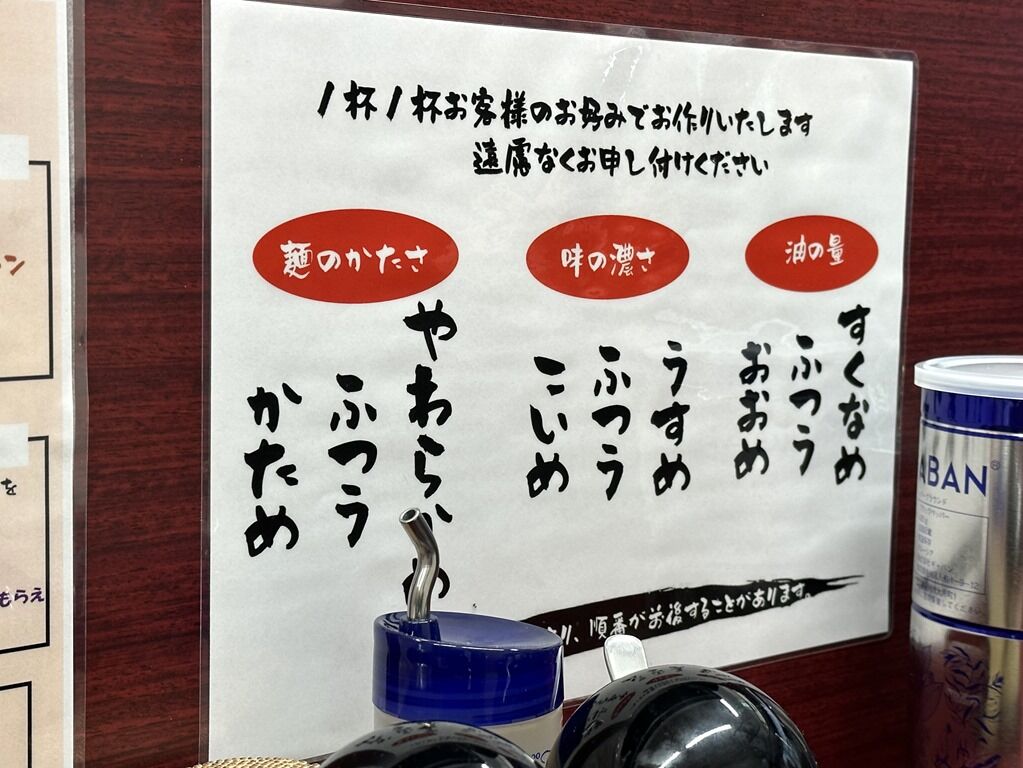 お好みは食券回収時に聞かれます。